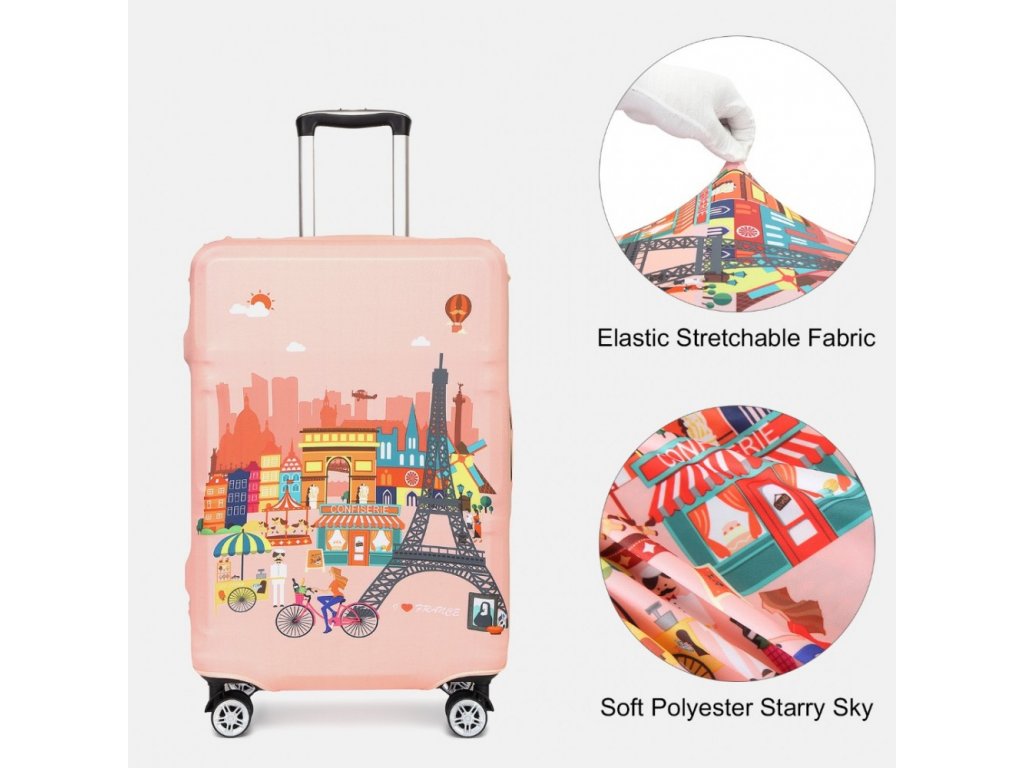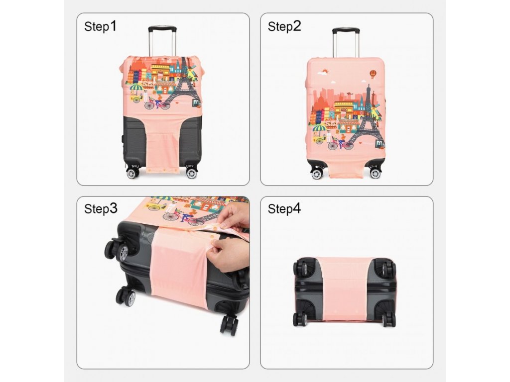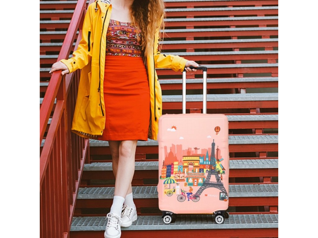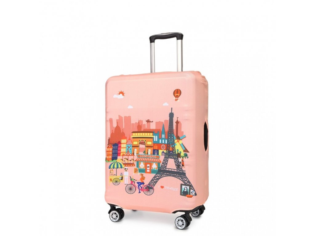 Stylový obal na kufr spojuje eleganci s funkčností. Poskytuje optimální ochranu pro vaše zavazadla. V růžovém provedení v designu France. Střední velikost.