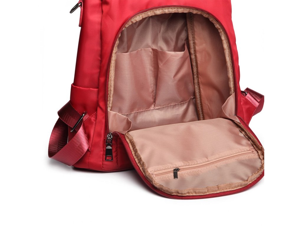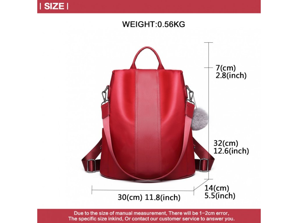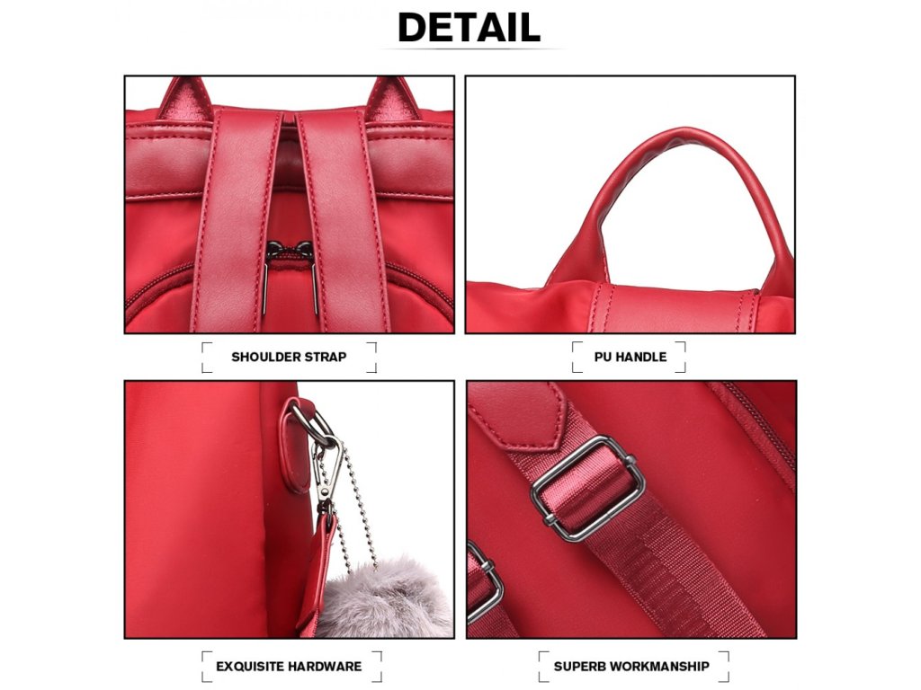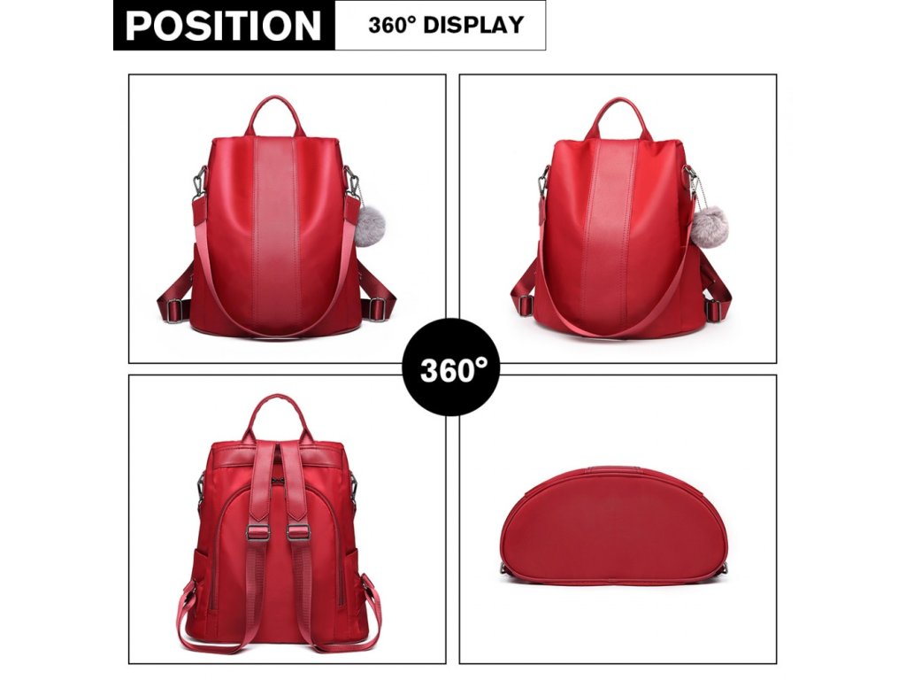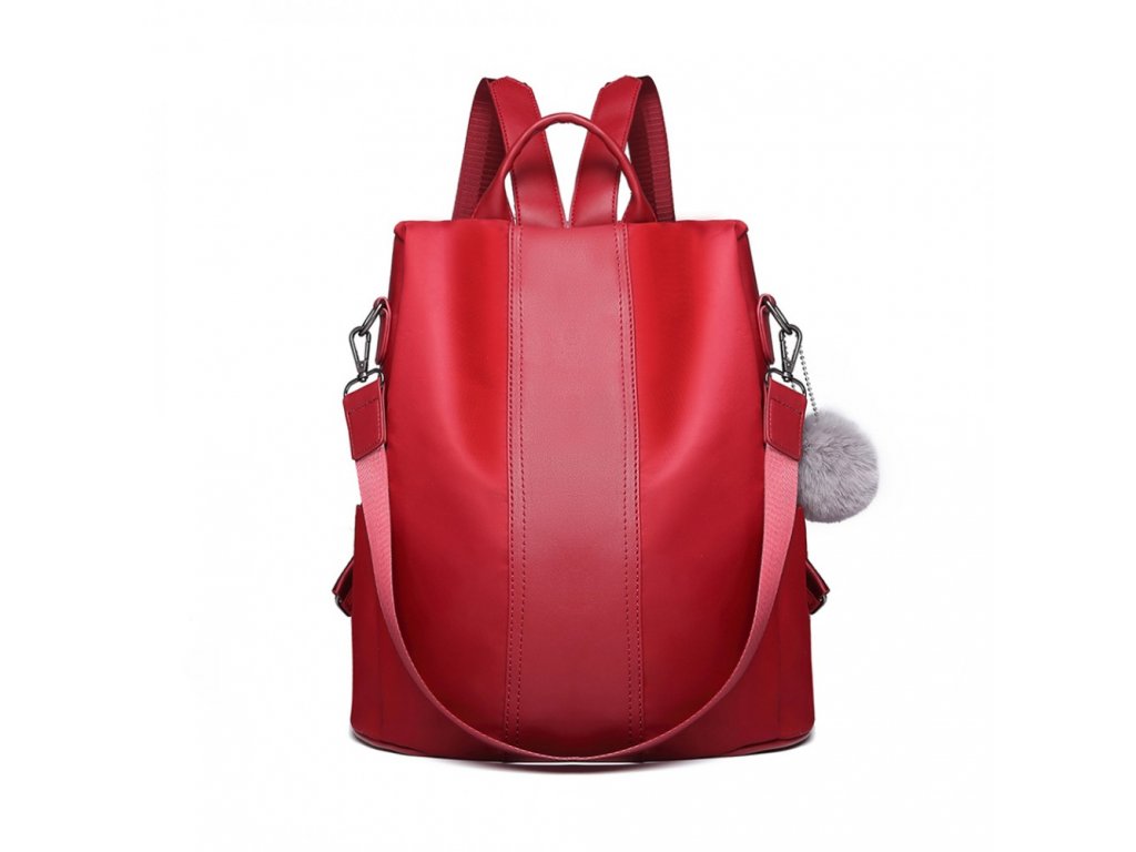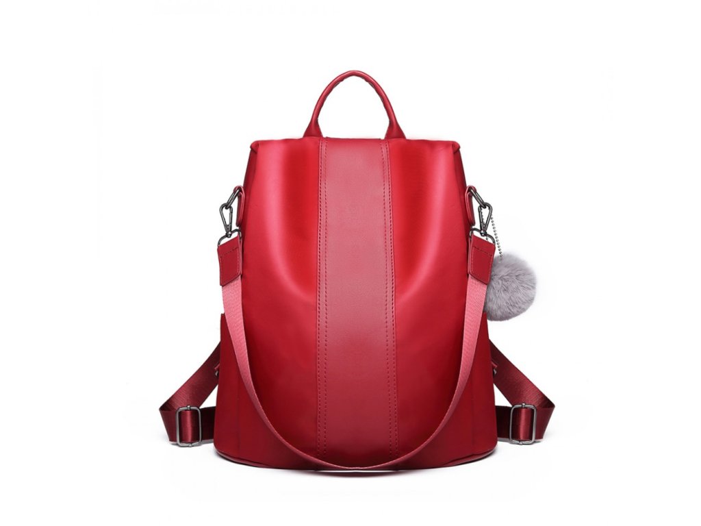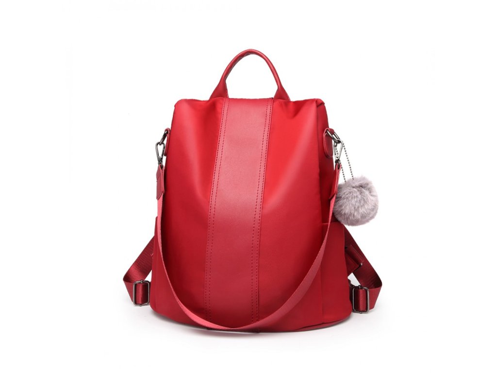 Módní elegantní batoh, plnící i funkci proti vykradení. Batoh rozepínatelný ze zadní strany, s vkusným huňatým přívěskem v červené barvě.