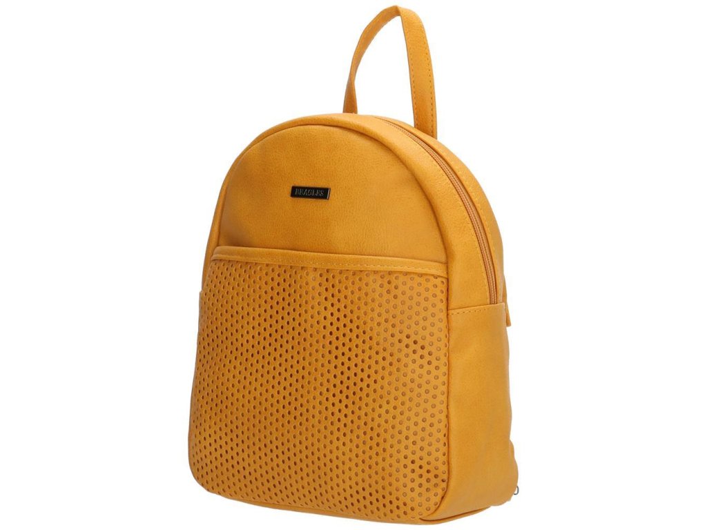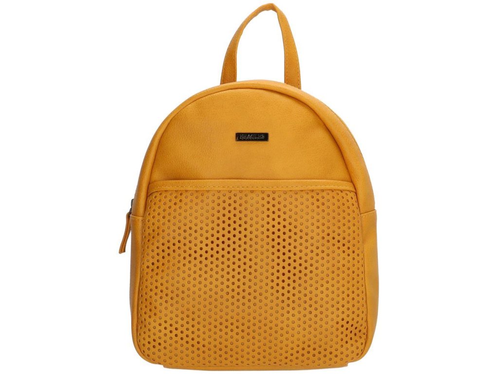 Malý elegantní batůžek z umělé kůže s monogramem, vhodný na každodenní nošení. V okrovém provedení.
