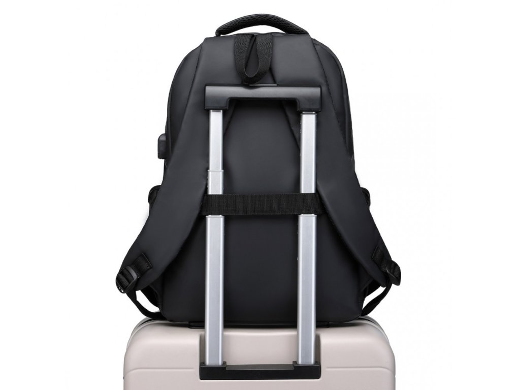 Zadní část batohu je vybavena pojízdným popruhem, který vám umožní jej bezpečně připevnit k rukojeti vašeho zavazadla pro snadnou přepravu na cestách.