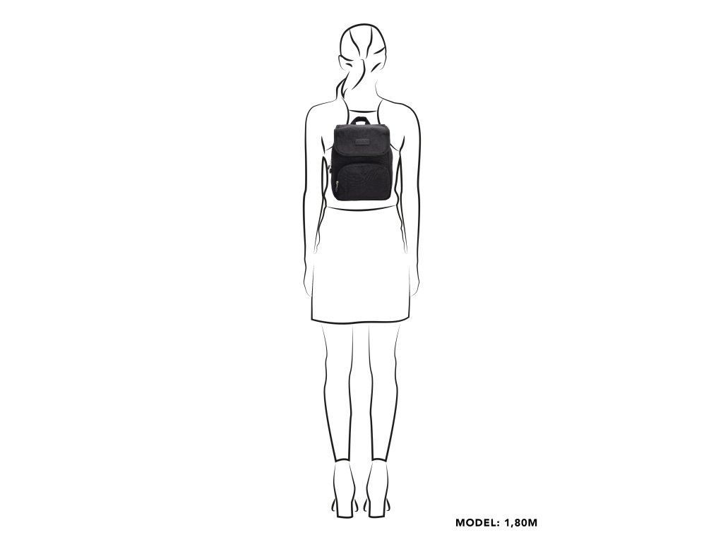 Obsahuje: Hlavní kapsa na zip, jedna otevřená kapsa uvnitř. Přední kapsa na zip.