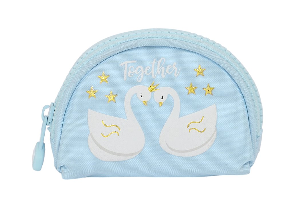 Dívčí malá peněženka od Glowlab v okouzlujícím designu "Cisnes". Do peněženky se vejdou mince nebo malé poklady vaší princezny. V modrém provedení.