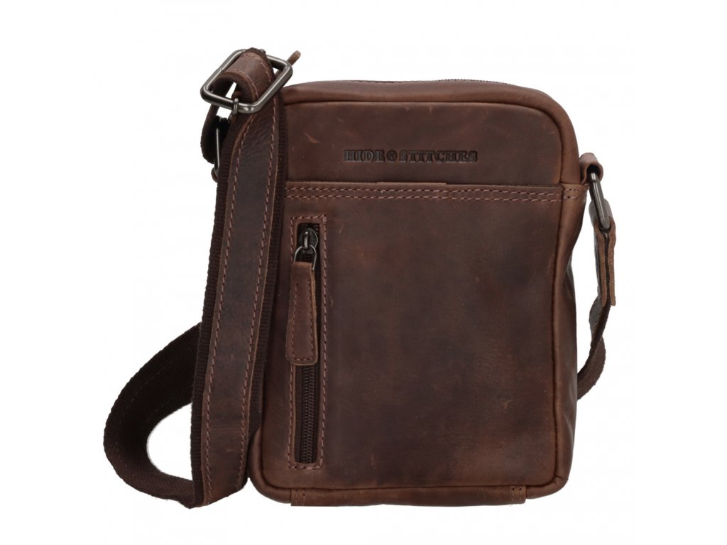 Hide & stitches Japura malá unisex crossbody taška - hnědá - 18 cm