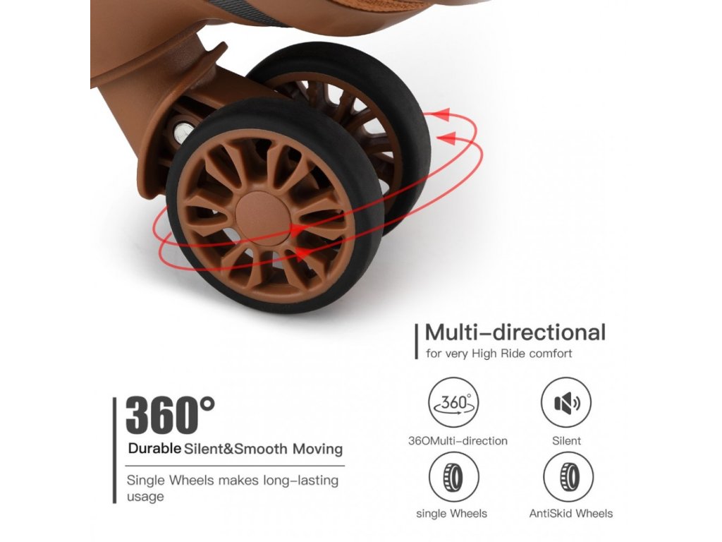 - Praktické úchyty: Horní a boční madlo pro snadné zvedání, čtyři plastové nožky pro stabilitu při položení kufru.
