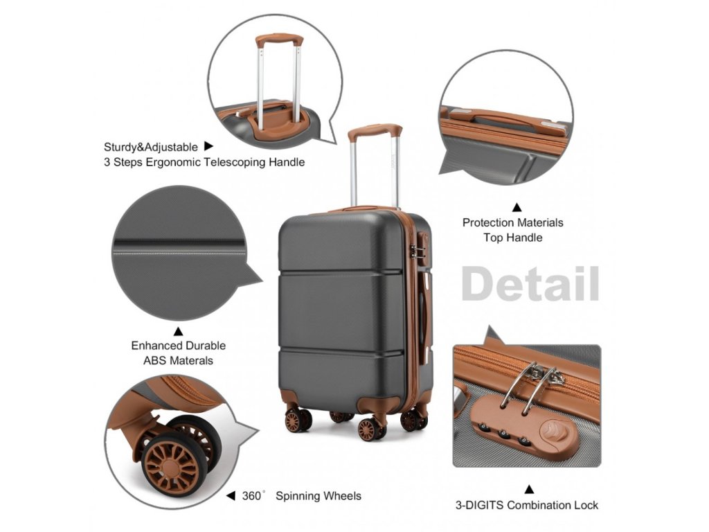 Kabinový ABS kufr KONO s TSA zámkem - 33L - šedo-hnědý