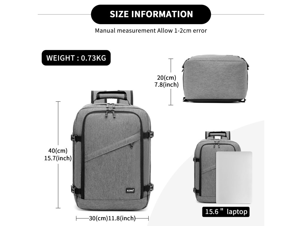 - 🧳 Ideální do letadla: Rozměry 30×20×40 cm splňují požadavky většiny aerolinek na příruční zavazadlo a zároveň poskytují více prostoru než běžné městské batohy.