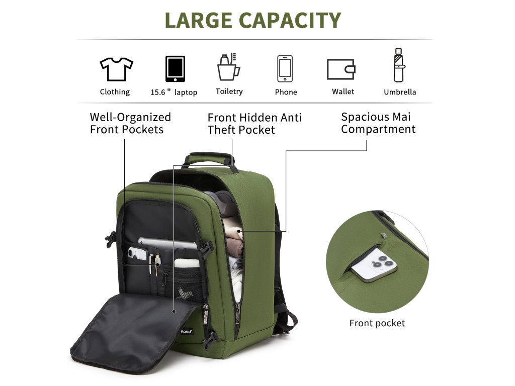 - 🧳 Ideální do letadla: Rozměry 30×20×40 cm splňují požadavky většiny aerolinek na příruční zavazadlo a zároveň poskytují více prostoru než běžné městské batohy.