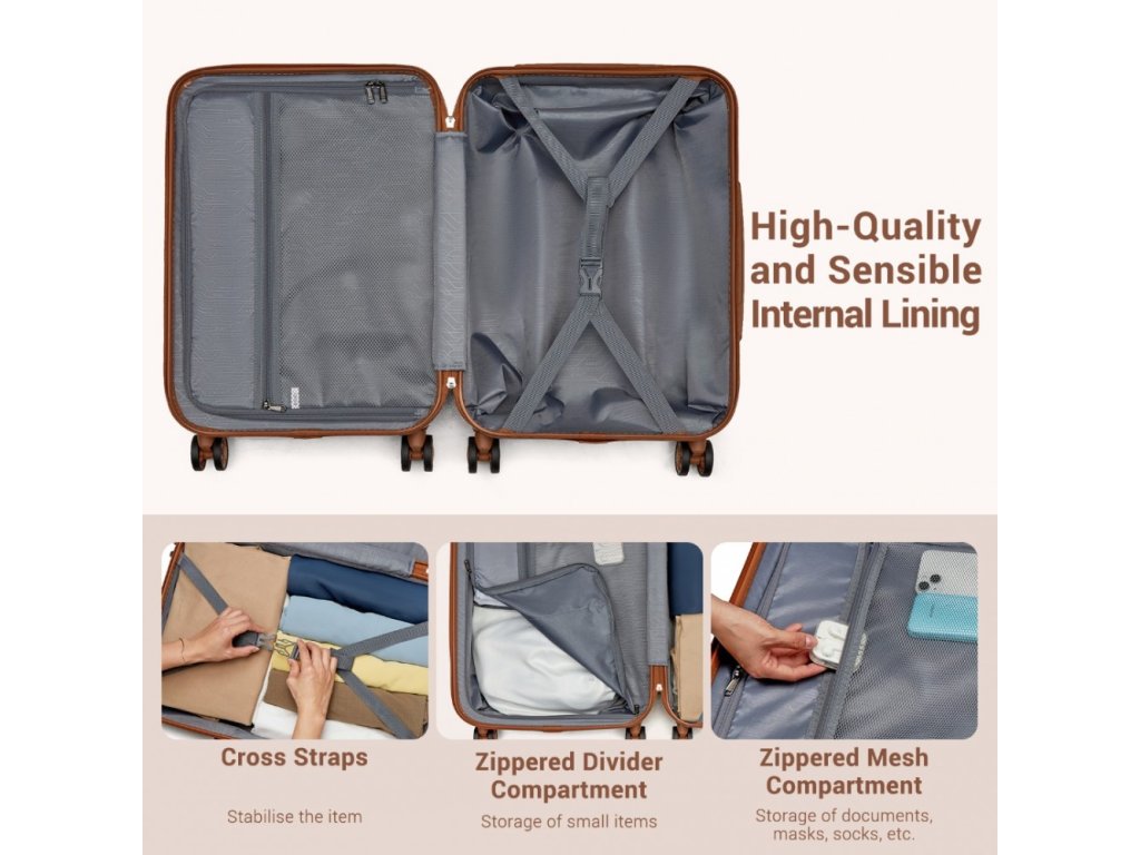 Kufr Kono v béžové barvě je ideální volbou pro ty, kteří hledají stylové, lehké a praktické zavazadlo. Perfektní řešení pro víkendové pobyty i pracovní cesty. 🎁✨