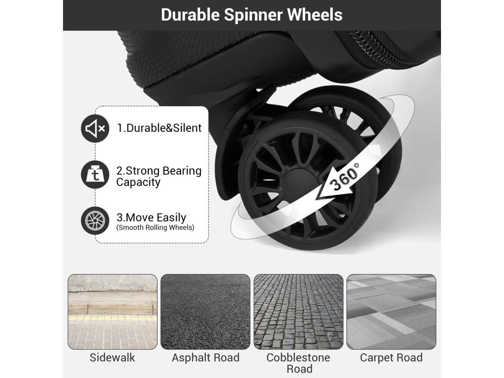 - 🛞 Tichý 360° pohyb: Kvalitní TPE kolečka zajišťují extrémně plynulou a nehlučnou jízdu po chodnících, letištních halách i kobercích.