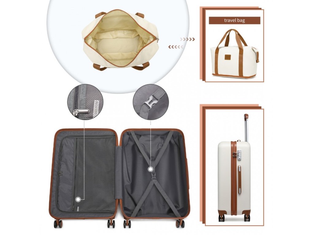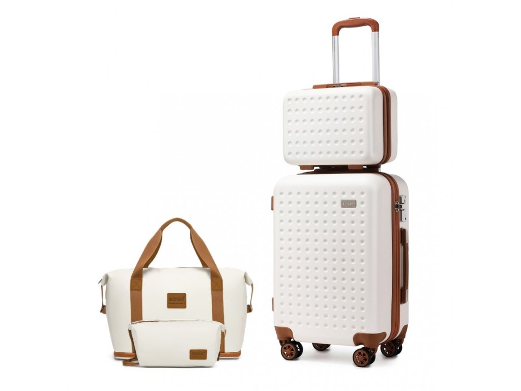 Kono 4 dílná cestovní sada kufru a zavazadel 11/40L - béžovo-hnědá