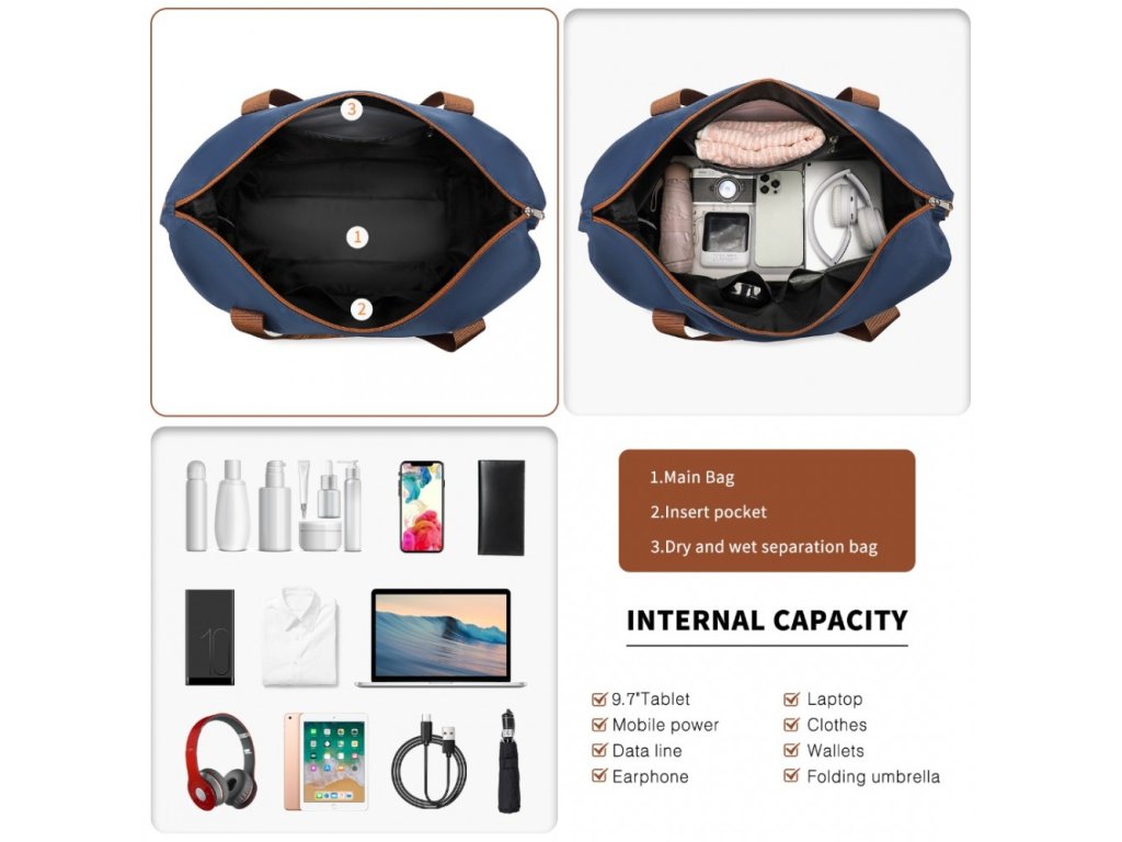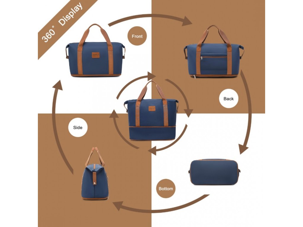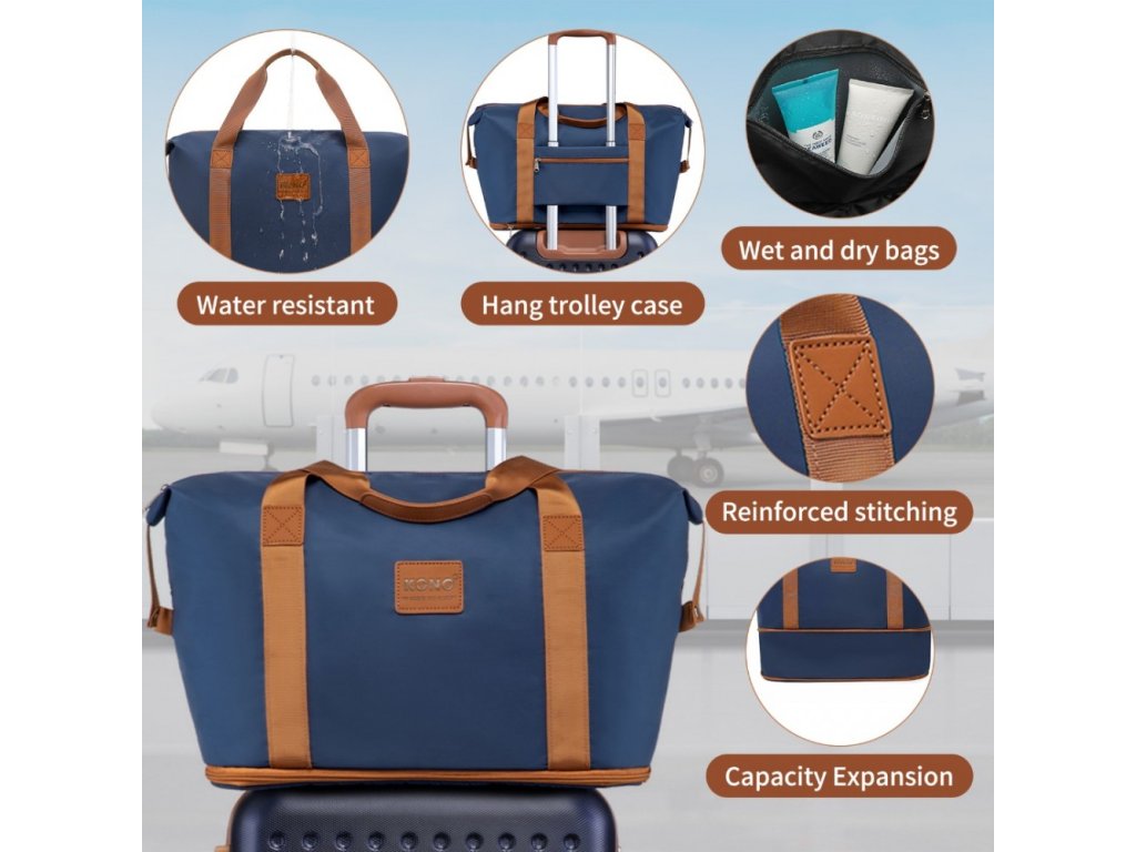 - Tato všestranná taška má rozšiřitelný design se spodním zipem, který zvyšuje její kapacitu. Nabízí velkou hlavní přihrádku, oddělenou mokrou/suchou část a vyhrazené kapsy na drobné nezbytnosti. Zadní kapsa poskytuje rychlý přístup k osobním věcem, zatímco nylonový popruh umožňuje snadné připevnění k madlům zavazadel.