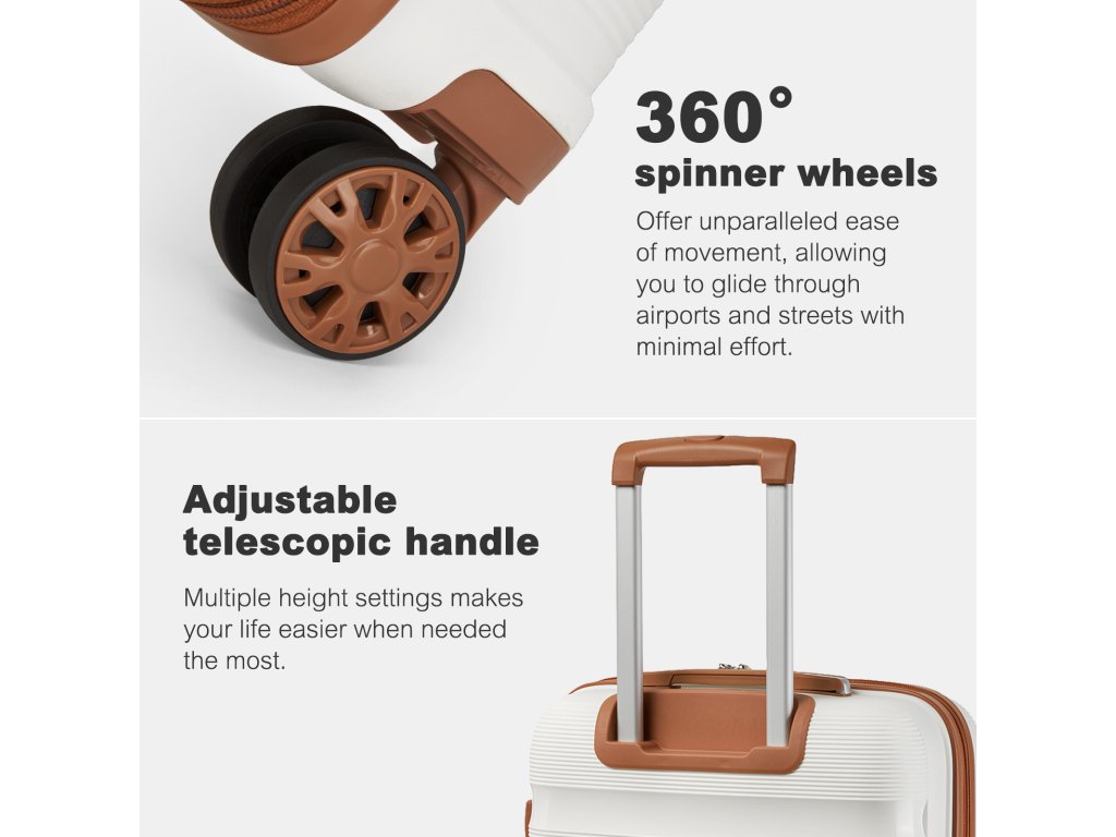 Kono 4-dílná sada kufrů z PP a kosmetickým kufříkem - krémovo-hnědá