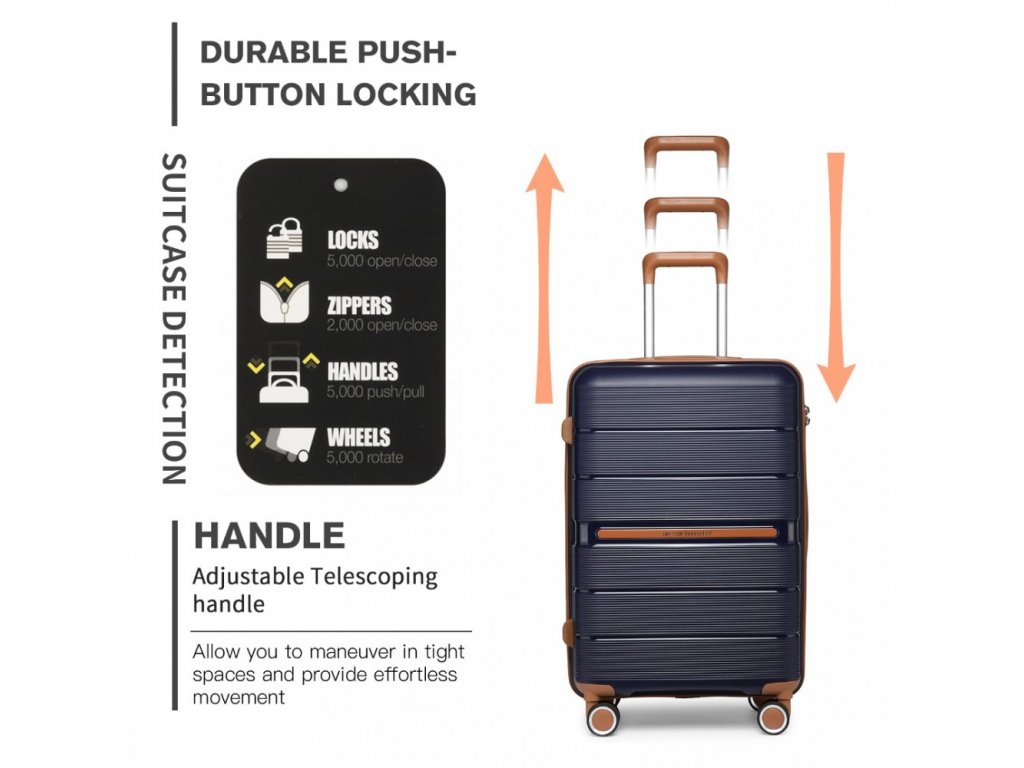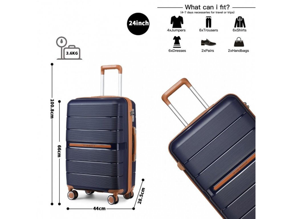 Kvalitní, pevné a lehké skořepinové zavazadlo, ideální na služební cesty, víkendové pobyty nebo rodinnou dovolenou. V navy modrém provedení s hnědými detaily.