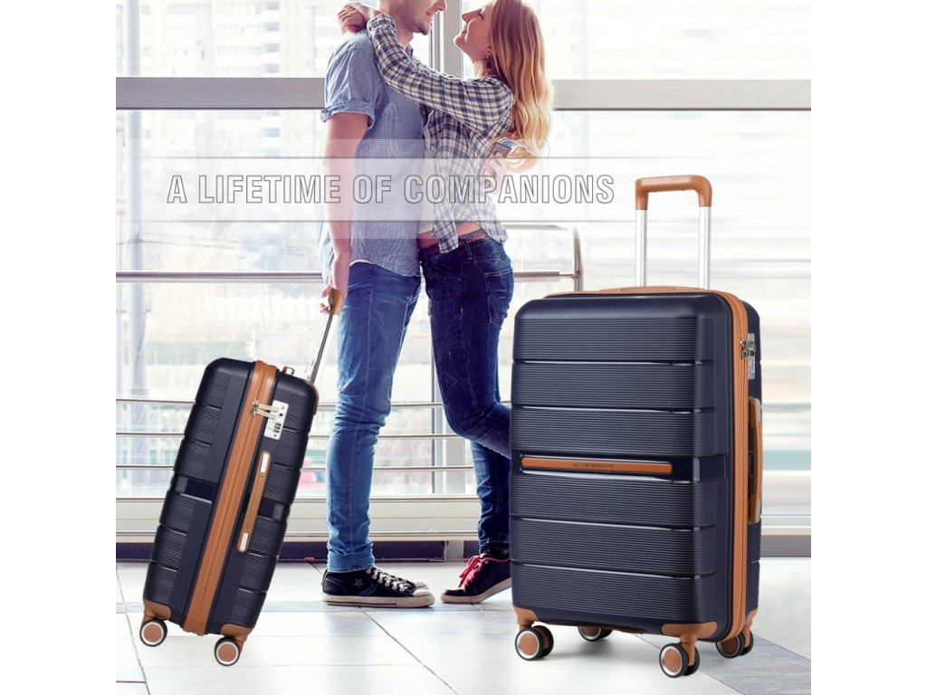 Kvalitní, pevné a lehké skořepinové zavazadlo, ideální na služební cesty, víkendové pobyty nebo rodinnou dovolenou. V navy provedení s hnědými detaily. Největší ze tří kufrů z této kolekce.