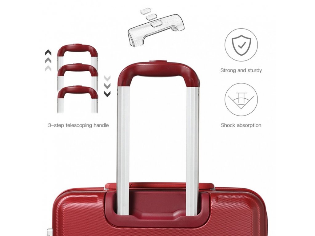 - Praktická madla: Horní a boční madla usnadňují manipulaci s kufrem.