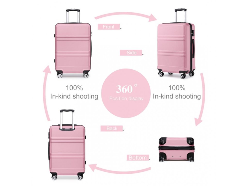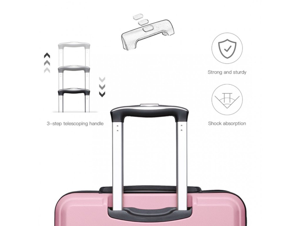 Praktický cestovní kufr střední rozměr. Kvalitní, ultra lehký kufr vyrobený z ABS materiálu vaše cestování pozvedne na novou úroveň. V růžovém provedení.