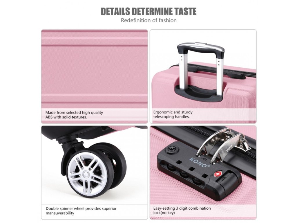 Kono cestovní kufr na kolečkách ABS - 66L - růžová