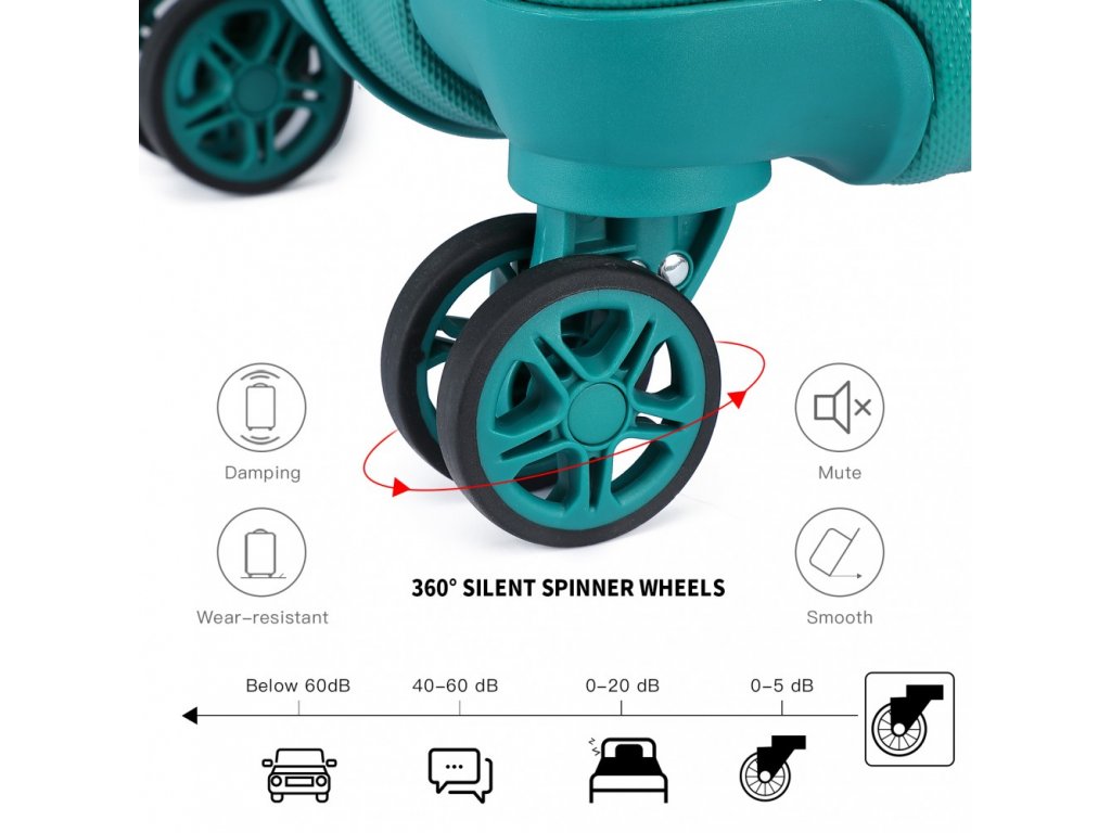 Kolečka otočná o 360° rovnoměrně rozloží váhu vašeho kufru a zajistí snadné klouzání po rušných letištích nebo železničních nádražích. Výsuvná, snadno uchopitelná teleskopická rukojeť s více nastaveními výšky.