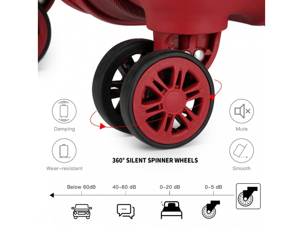 - Snadná manipulace: 4 kolečka otočná o 360° zajišťují hladký a tichý pohyb po letištích i nádražích.