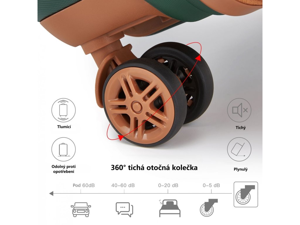 Kono cestovní kufr na kolečkách s kosmetickým kufříkem ABS - 8L/44L - zeleno-hnědý