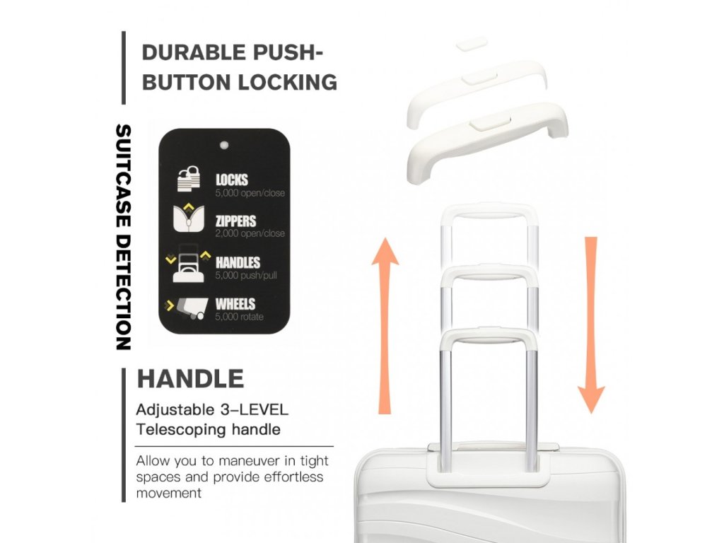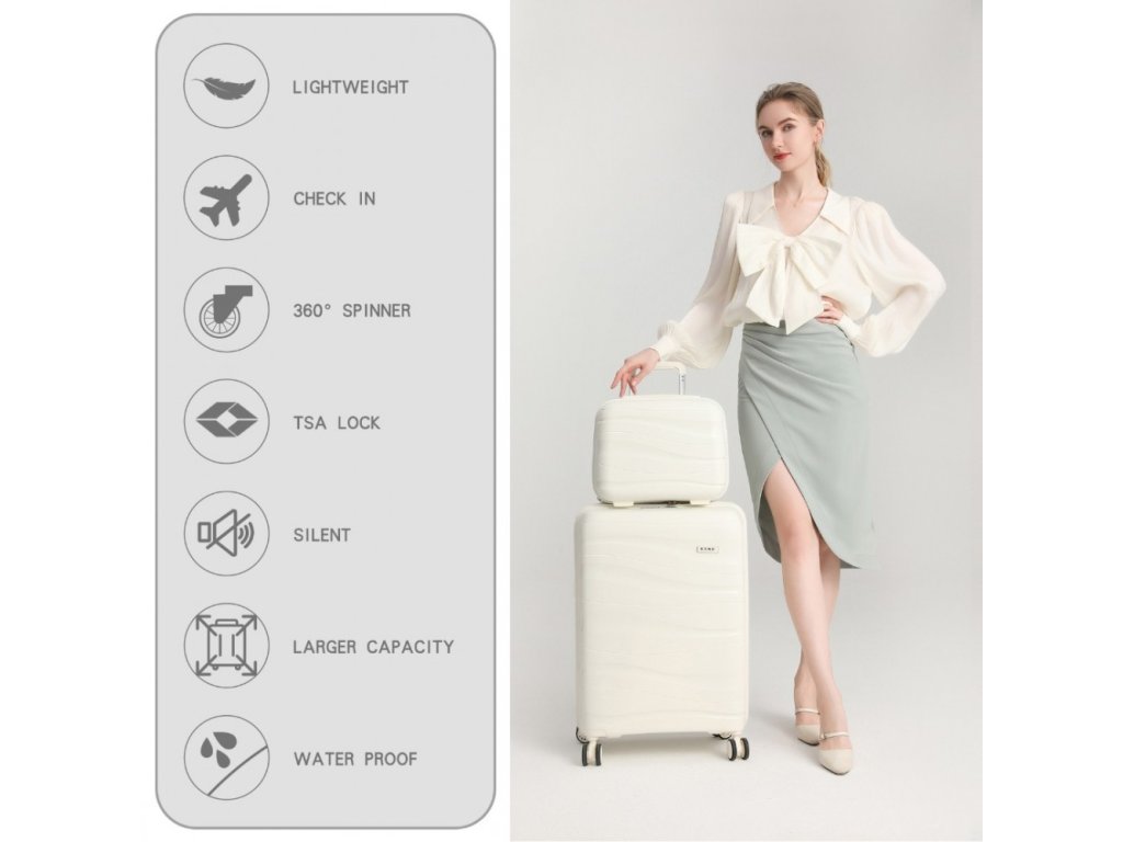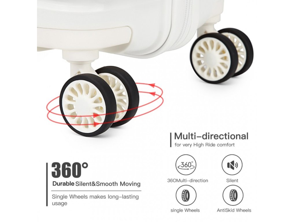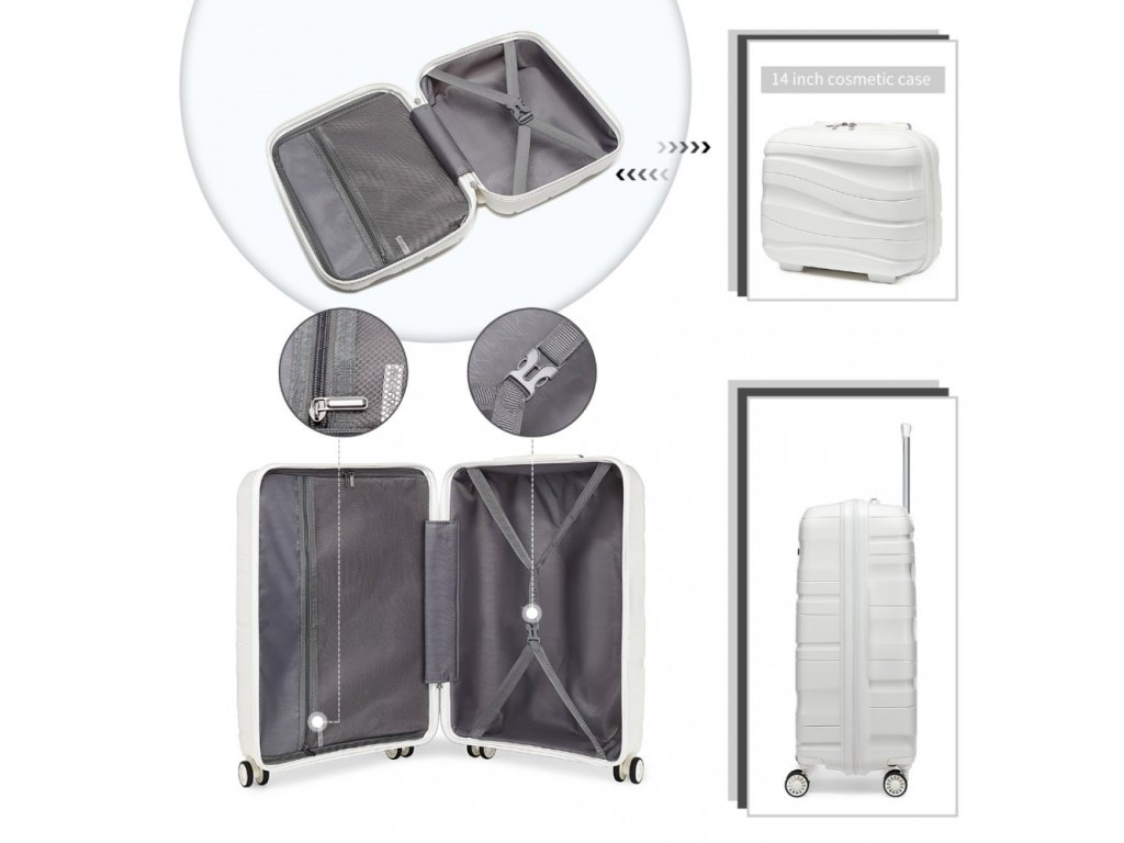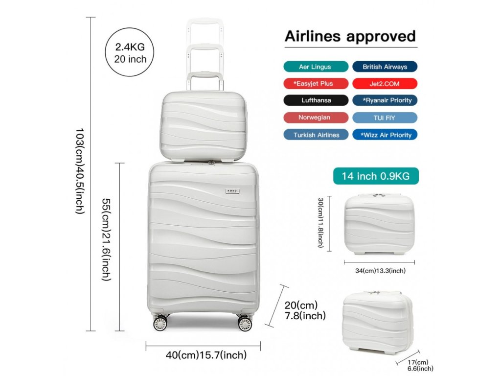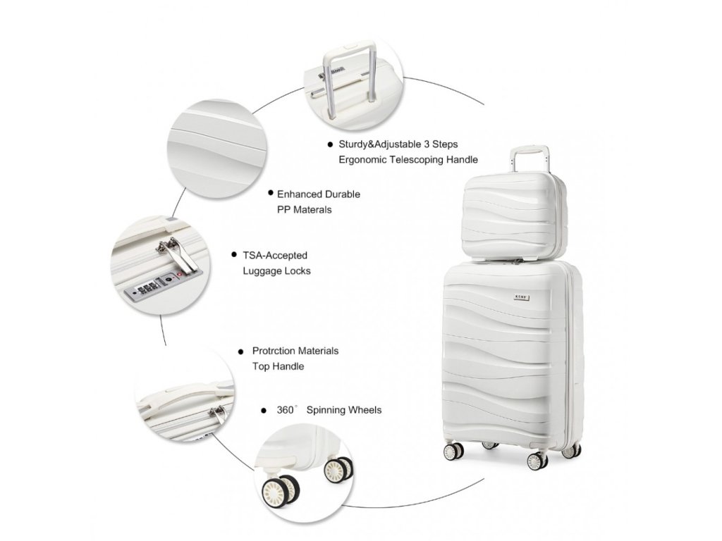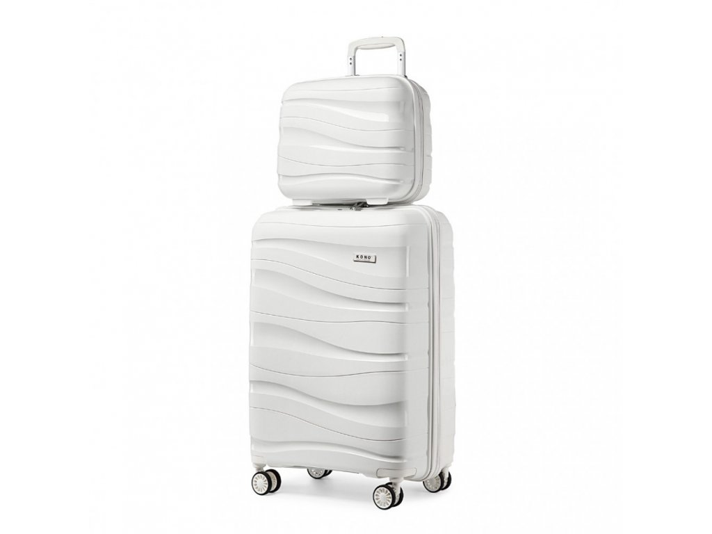 Praktická a vysoce elegantní sada polypropylenového kabinového kufru a toaletního pouzdra značky KONO. Ať už jste na krátké nebo dlouhé cestě, tato lehká dvoudílná sada kufrů splní vaše cestovní potřeby. V bílém provedení. Se zabudovaným TSA zámkem integrovaným do prostoru kufru.