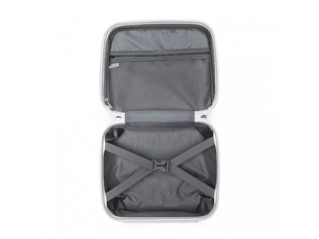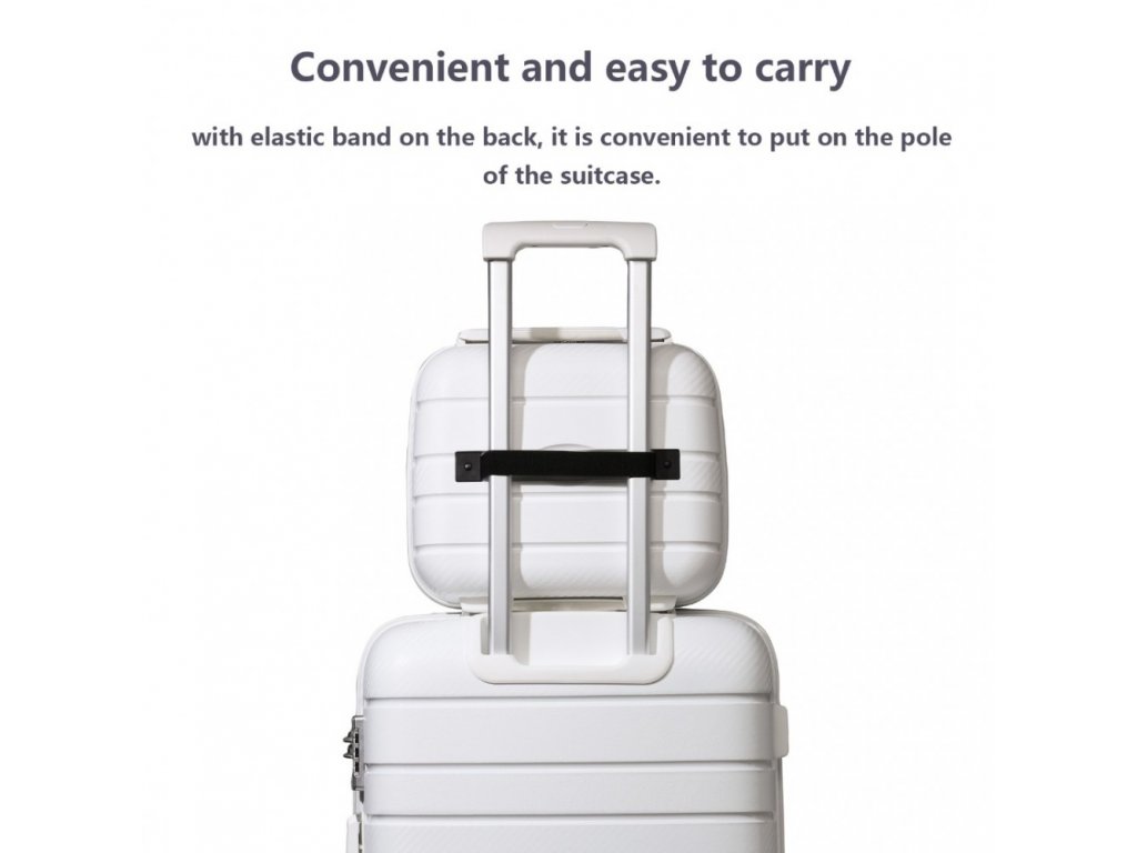 - Na zadní straně se nachází popruh pro snadné připojení k madlu kufru – ideální pro rychlé přesuny na letišti.