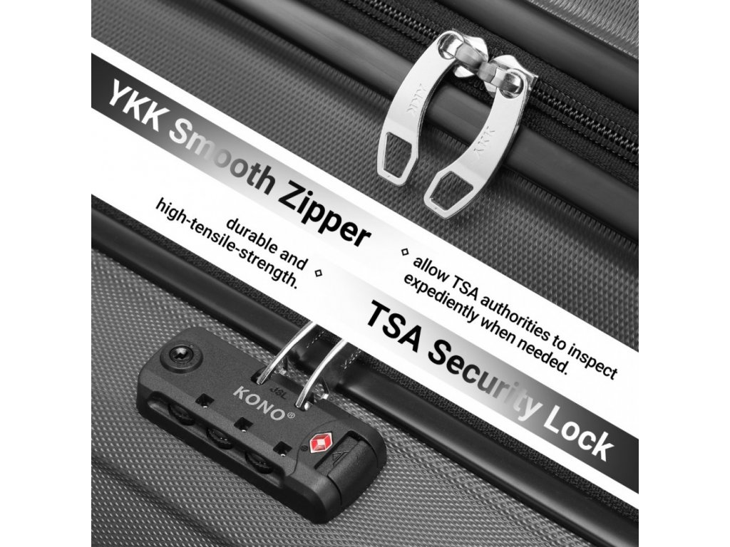 Praktické a designové příruční zavazadlo KONO Cabin Luggage s vestavěným TSA bezpečnostním zámkem z kvalitního ABS materiálu. V šedém provedení.