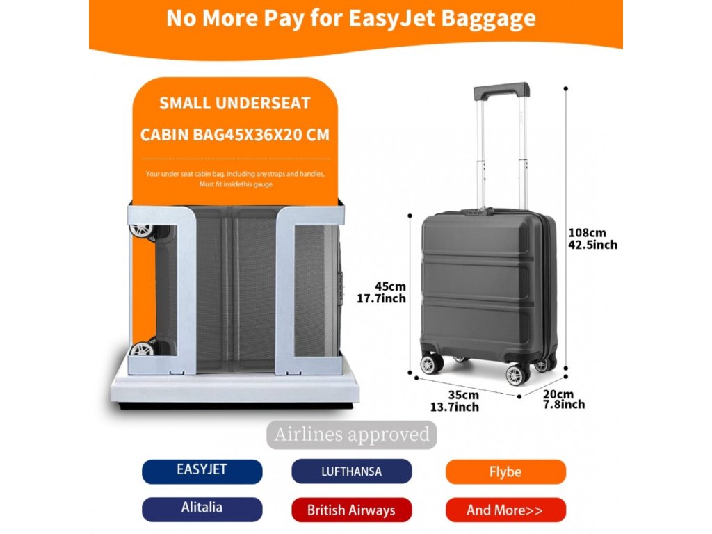 Toto čtyřkolečkové cestovní zavazadlo je vhodné pro většinu nízkonákladových leteckých společností včetně BA, EasyJet a Jet2.com jako kabinové zavazadlo.