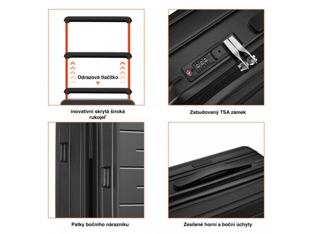 Vestavěný TSA zámek v horní části kufru umožňuje bezproblémovou celní kontrolu vašich zavazadel.