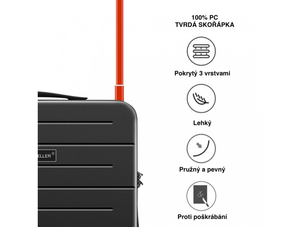 Vyrobeno z vysoce kvalitního PC (polykarbonát) materiálu, který zabraňuje poškrábání a udržuje vaše zavazadlo dlouhodobě v dobrém stavu.