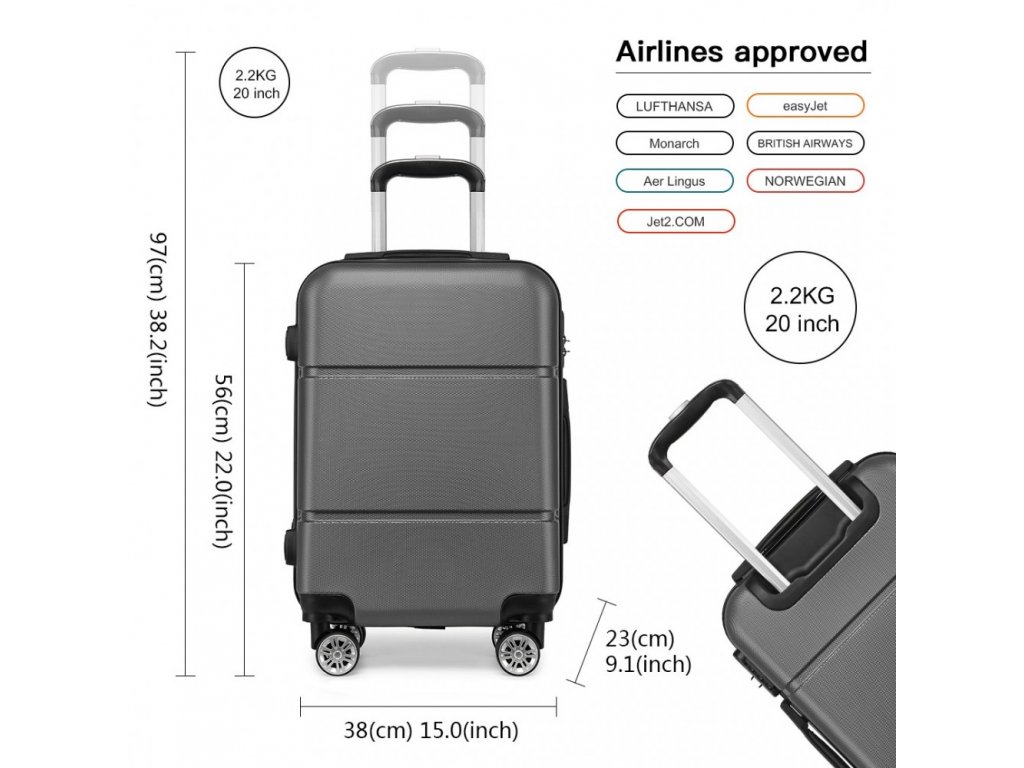 KONO kabinový kufr na kolečkách - ABS - 41L - šedý