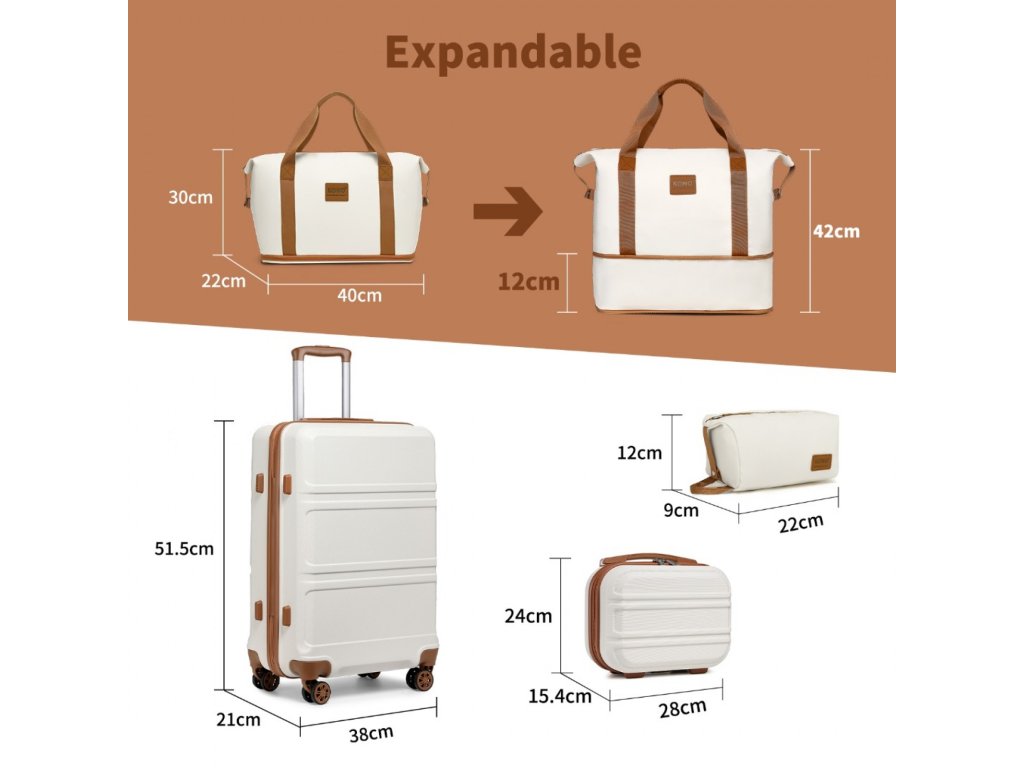 KONO Sada 2 ABS kufrů s víkendovou a kosmetickou taškou - béžovo hnědá