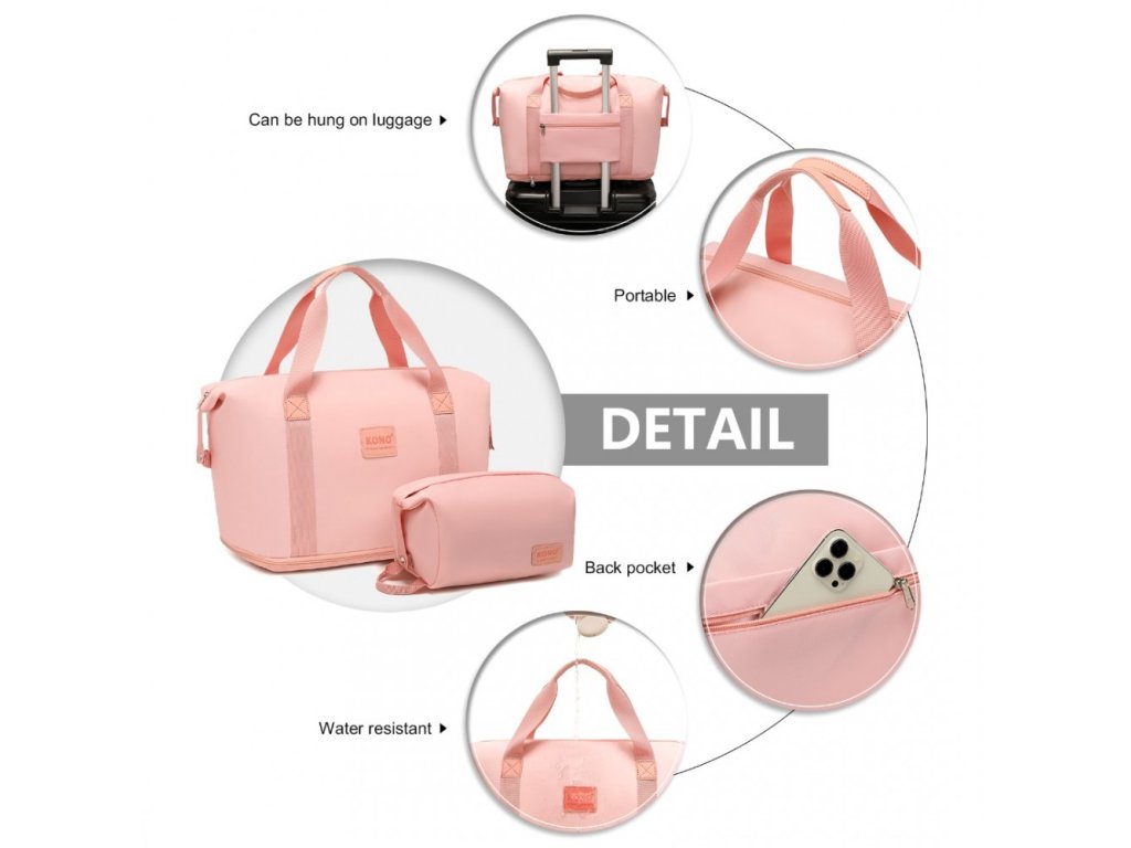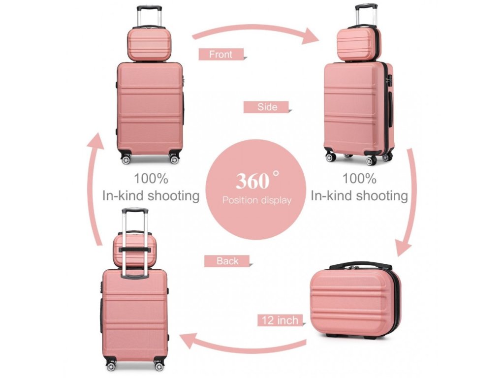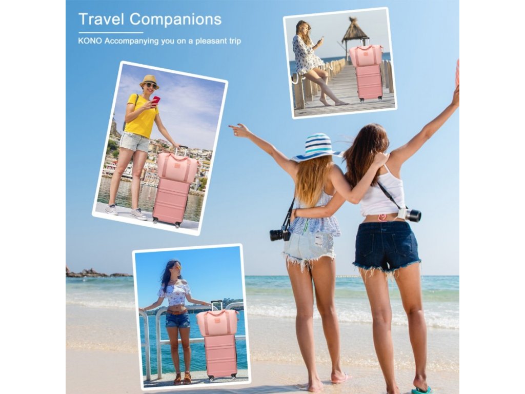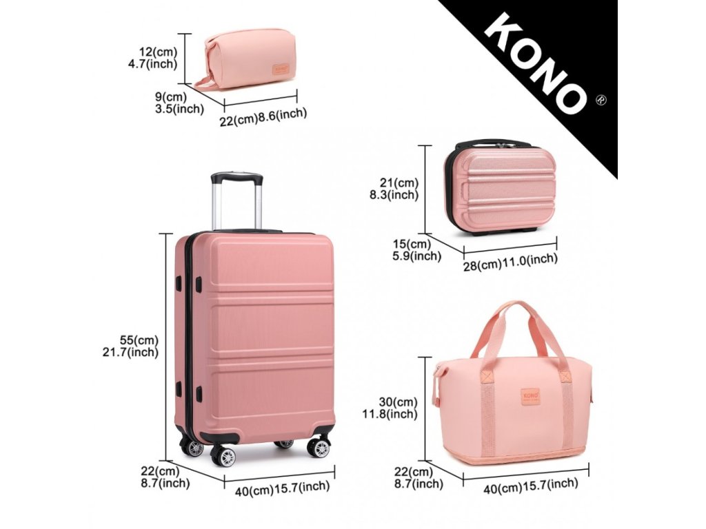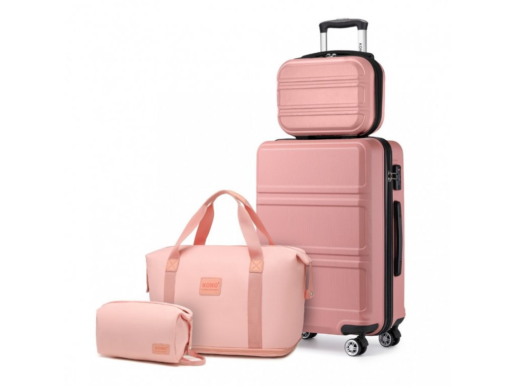 KONO čtyřdílná sada obsahuje velký 49L kufr s pevnou skořepinou, kompaktní příruční zavazadlo 8L, všestrannou tašku a kosmetickou tašku. Zvyšte svůj zážitek z cestování s touto vynikající sadou zavazadel, která hladce spojuje styl a funkčnost pro moderního cestovatele. V růžovém a nude provedení.
