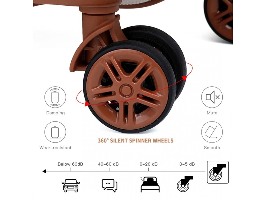 - Kolečka otočná o 360 ° rovnoměrně rozloží váhu vašeho kufru a zajistí snadné klouzání po rušných letištích nebo nádražích.