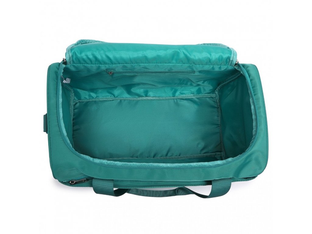 Kabinová taška je vyrobena z polyesterových vláken a její vnitřek je rovněž vystlán polyesterem.