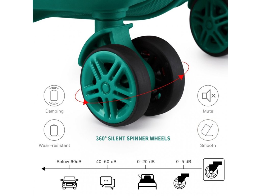 - Kolečka otočná o 360 ° rovnoměrně rozloží váhu vašeho kufru a zajistí snadné klouzání po rušných letištích nebo nádražích.