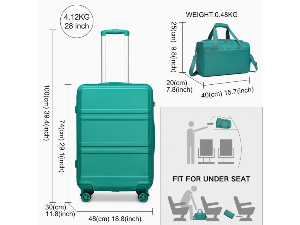 KONO Sada 2 zavazadel - ABS kufr 96L s cestovní taškou 20L - tyrkysová