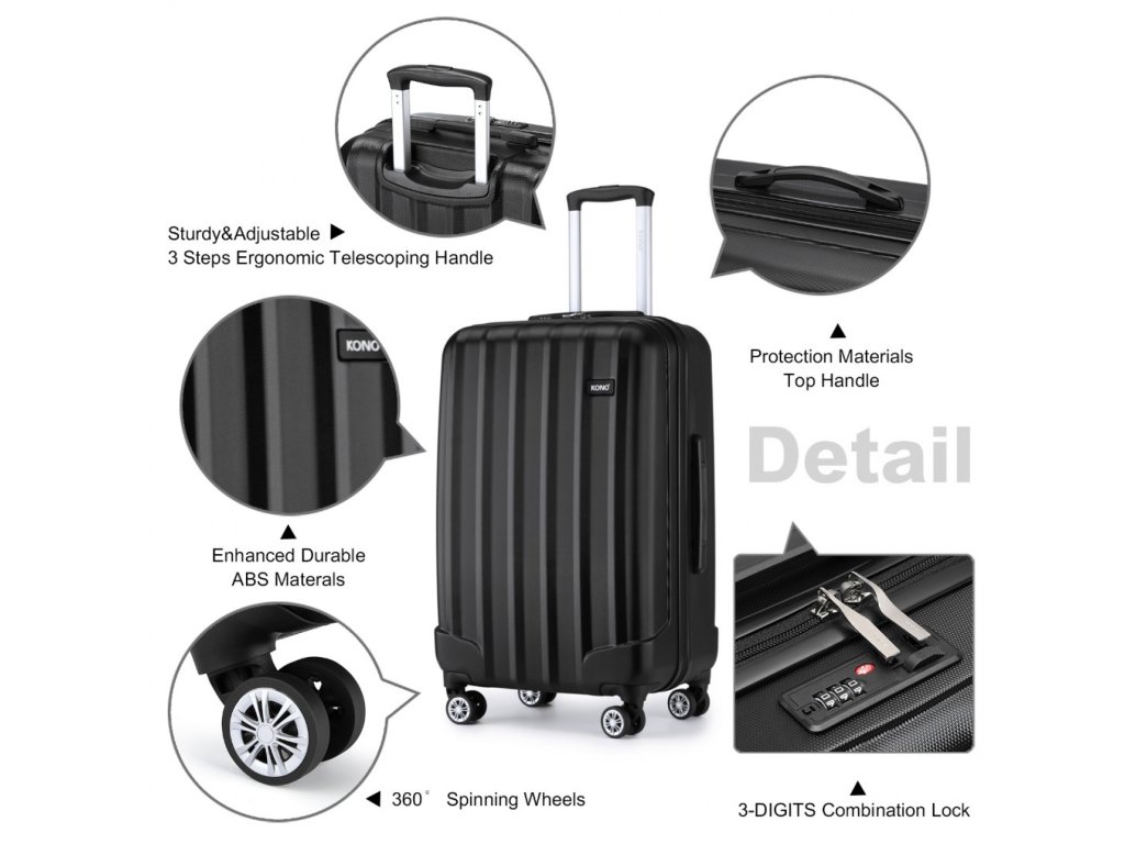 Kono Sada 3 cestovních kufrů ABS - černá - 38/73/114L