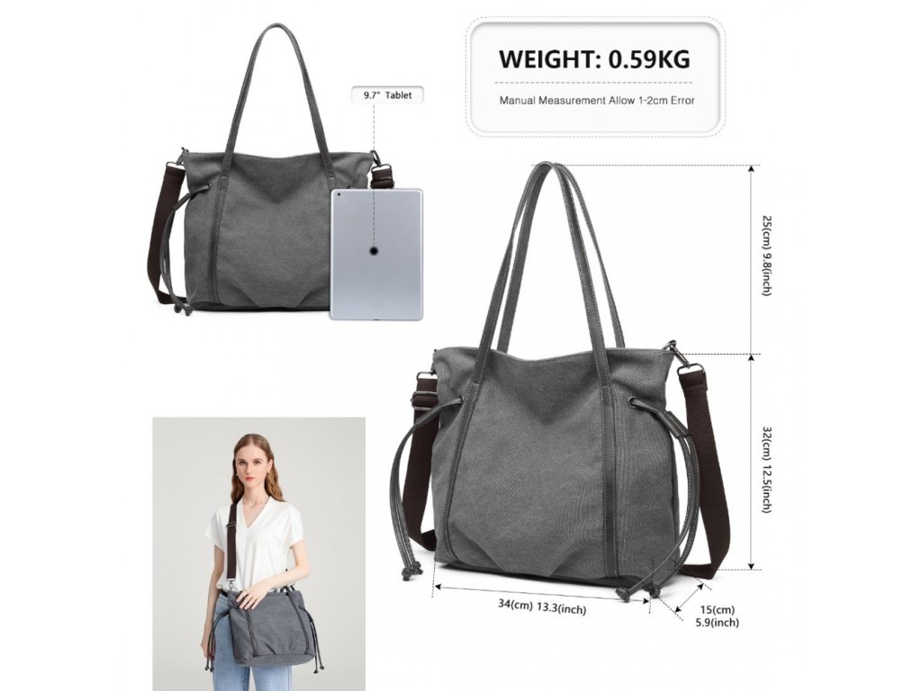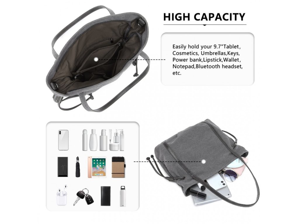 Praktická a stylová taška na rameno větších rozměrů kam se vám vejde spousta potřebných věcí. Plátěný design v kombinaci s koženkovými prvky působí velmi vkusně a stylově. V šedém provedení.
