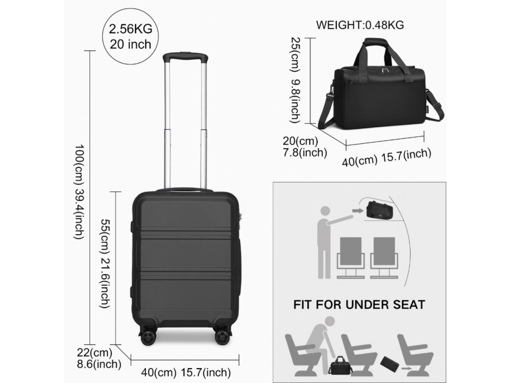 20 palcový kufr se hodí pro většinu hlavních leteckých společností včetně BA, EasyJet a Jet2.com. Vždy se informujte u své letecké společnosti, protože rozměry kabinových zavazadel se mohou lišit od povolené velikosti.