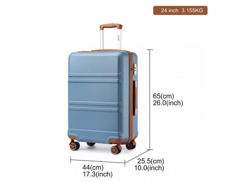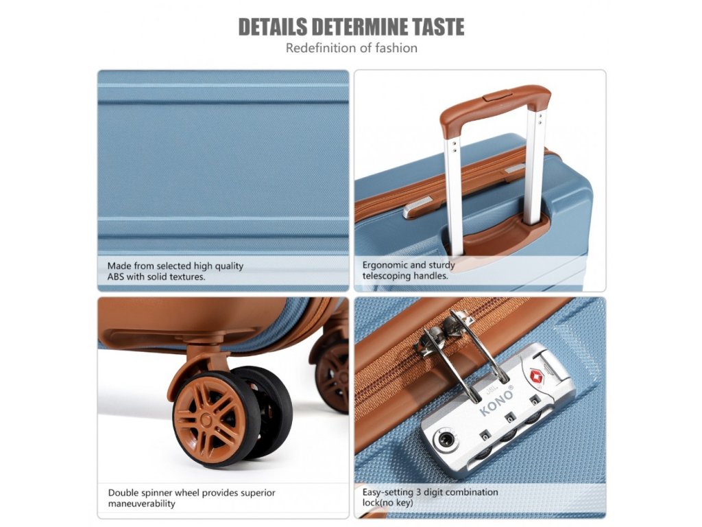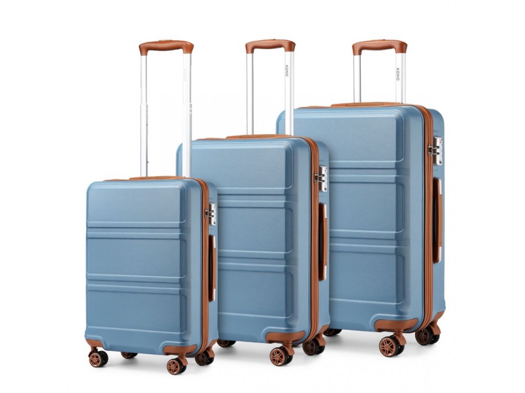KONO Set 3 cestovních kufrů s horizontálním designem - ABS - světlo modrá/hnědá - 44L/66L/96L