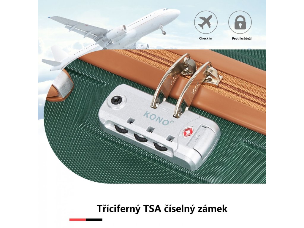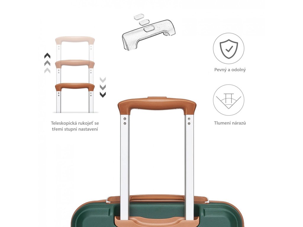 - 🔒 TSA zámky: Každý kufr je vybaven kódovým TSA zámkem, který chrání zavazadlo a zároveň umožní jeho kontrolu bez poškození.