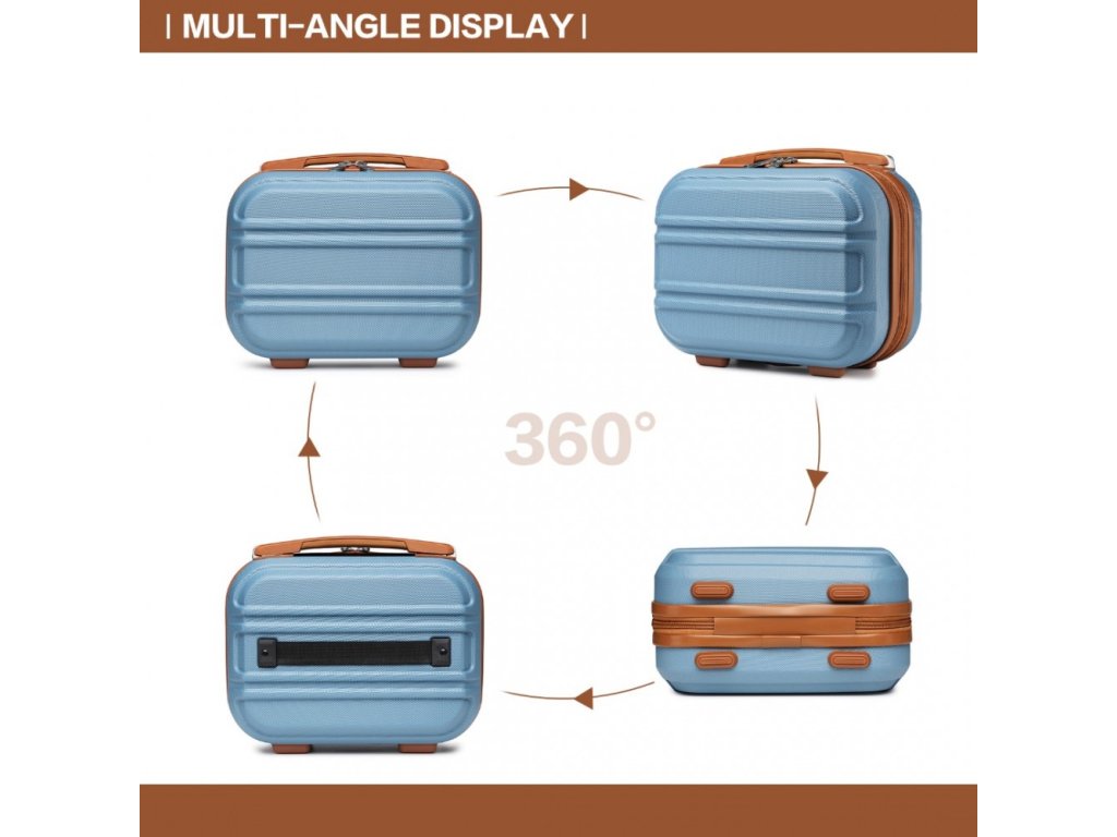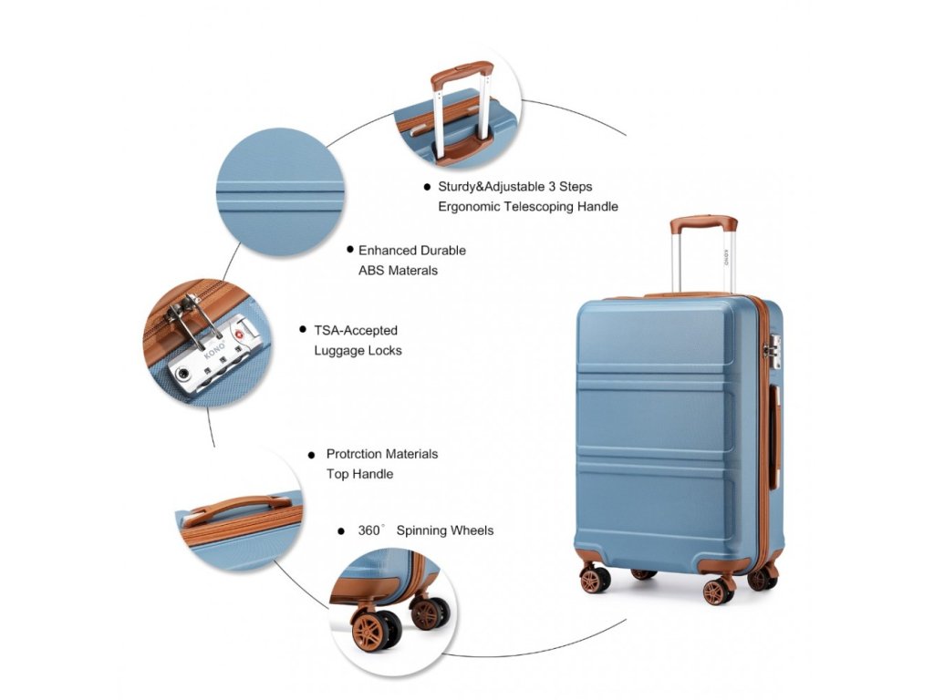 KONO Set 4 cestovních kufrů s horizontálním designem - ABS - modro hnědá - 10L/44L/66L/96L