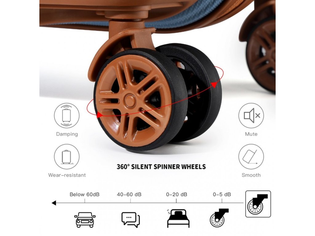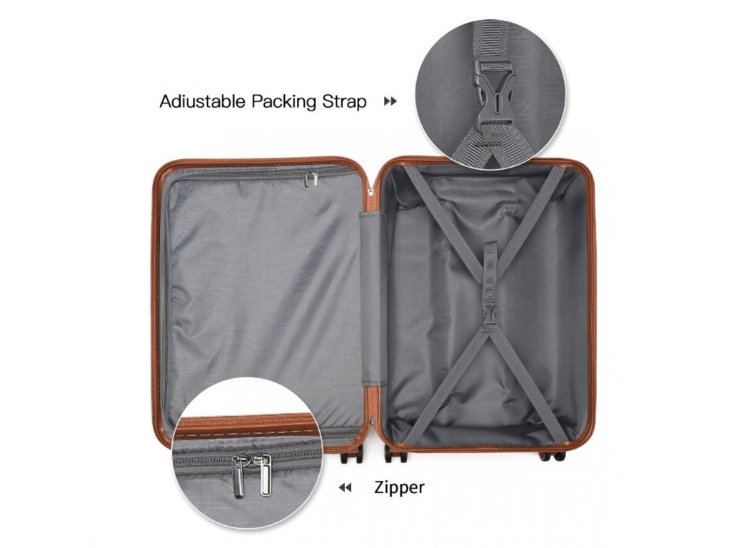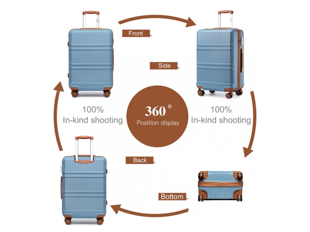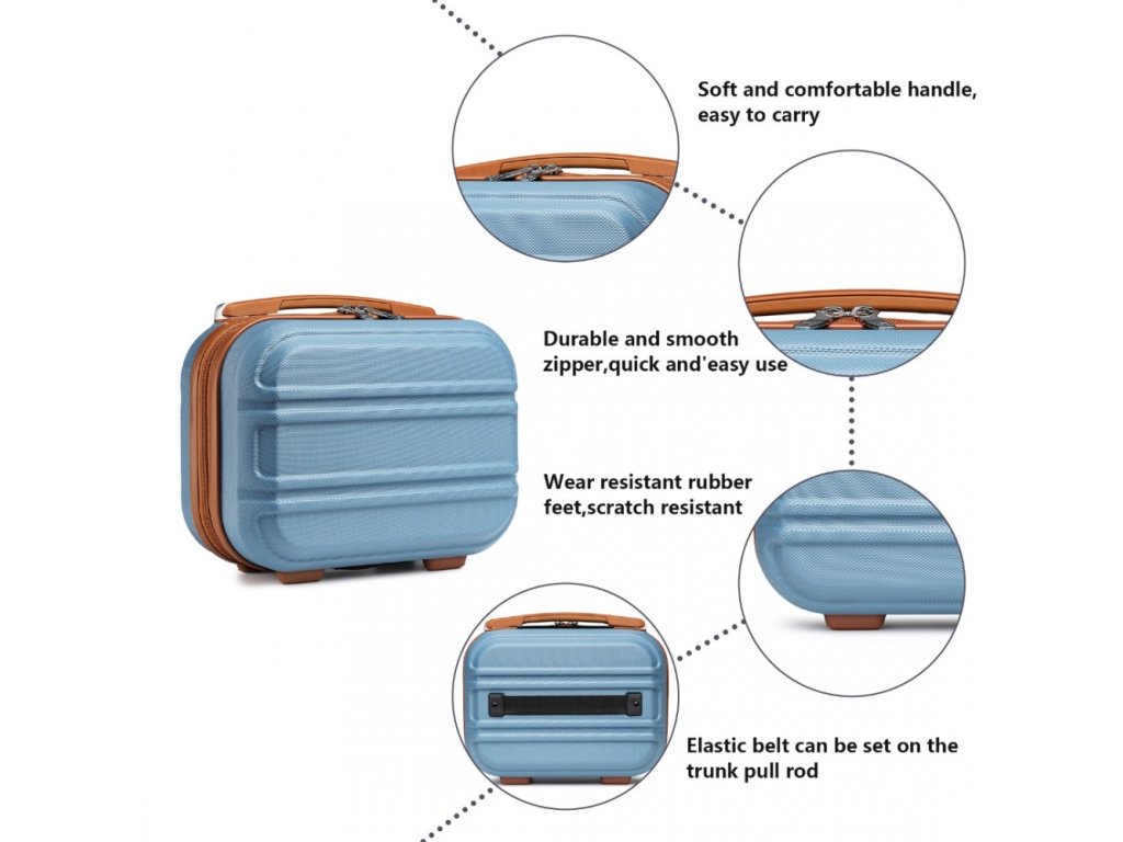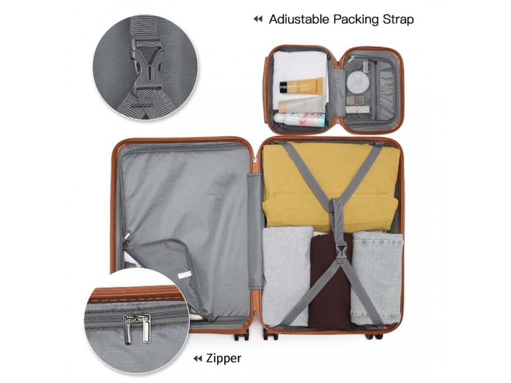 Set čtyř skořepinových kufrů ve třech různých velikostech s toaletním pouzdrem. Set kufrů je vyroben z vysoce kvalitního materiálu ABS s vestavěným TSA bezpečnostním zámkem. V modro hnědém provedení.