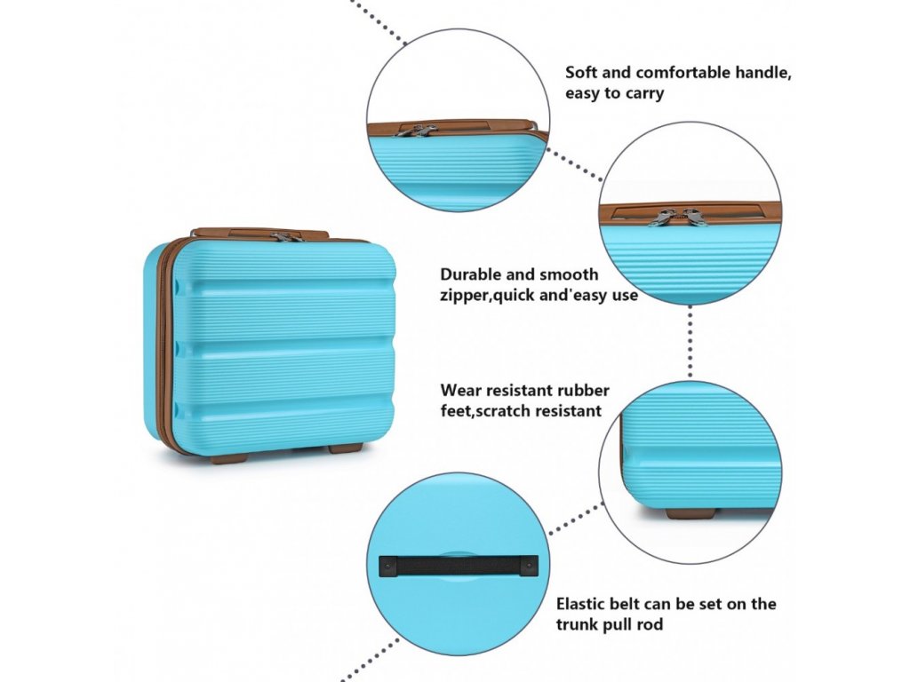 Set čtyř skořepinových kufrů v různých velikostech s kosmetickým pouzdrem. Set kufrů je vyroben z vysoce kvalitního polypropylenu. V modro hnědém provedení.