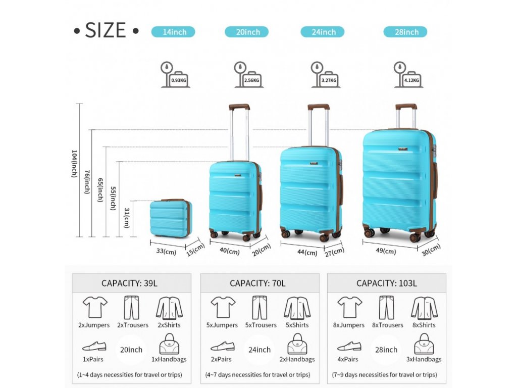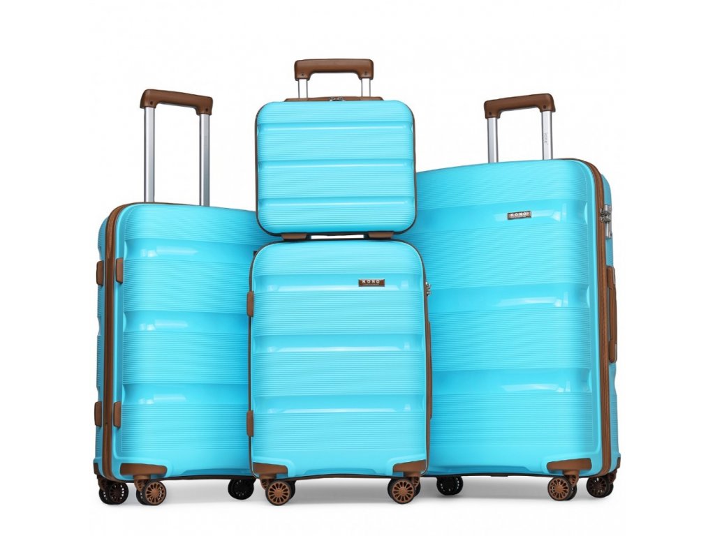 KONO Set 4 kufrů z polypropylenu - 15L, 39L, 70L, 103L - modro hnědý