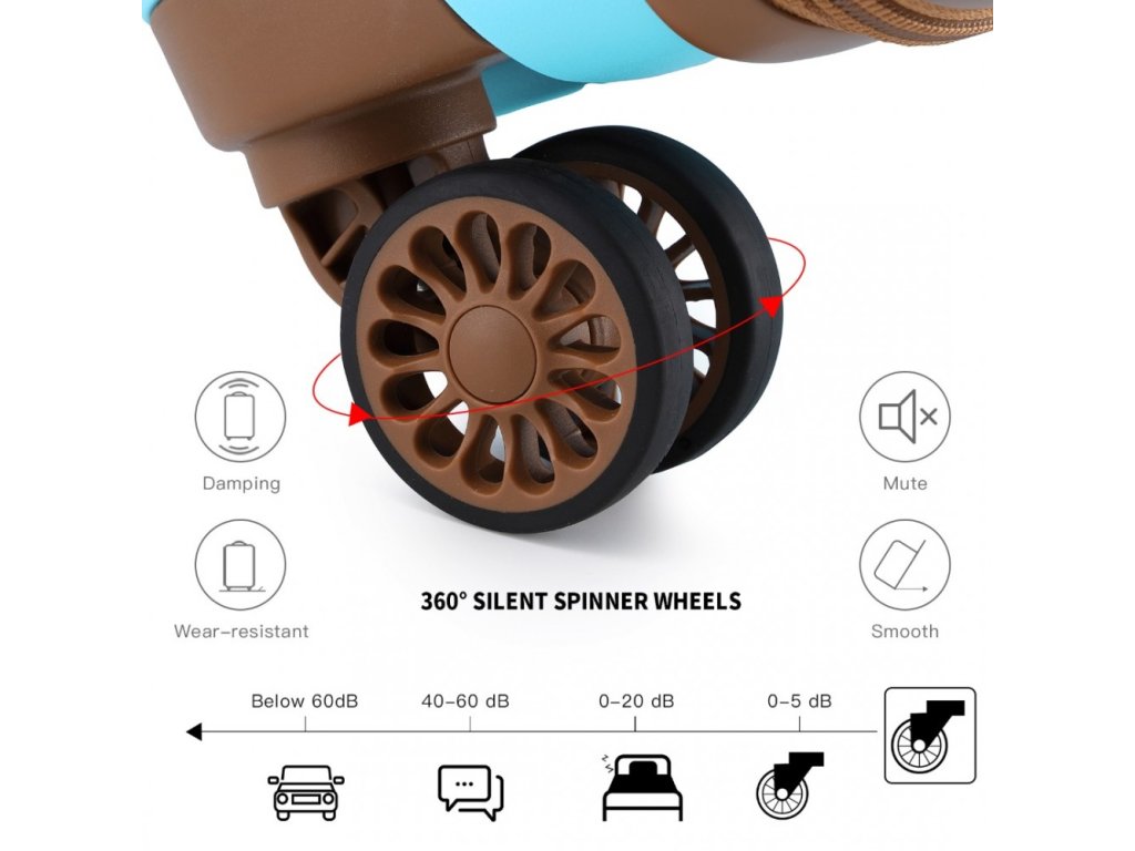- 4 x 360 ° otočná kolečka rovnoměrně rozloží váhu vašeho kufru.