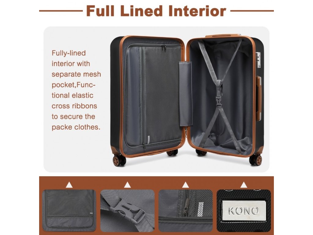 Ať už cestujete služebně nebo rekreačně, tento kufr značky Kono splní všechny vaše potřeby a zpříjemní vaši cestu. Největší ze tří velikostí v černém provedení.