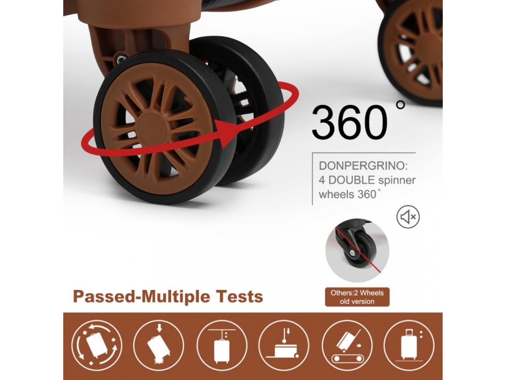- Díky otočným kolečkům o 360° je kufr vysoce manévrovatelný a umožňuje mu bez námahy klouzat přeplněnými letišti a stanicemi.