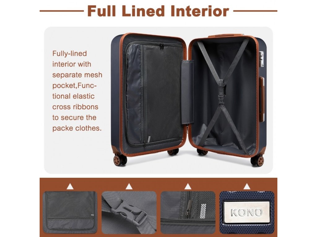 Ať už cestujete služebně nebo rekreačně, tento kufr značky Kono splní všechny vaše potřeby a zpříjemní vaši cestu. Největší ze tří velikostí v navy provedení.